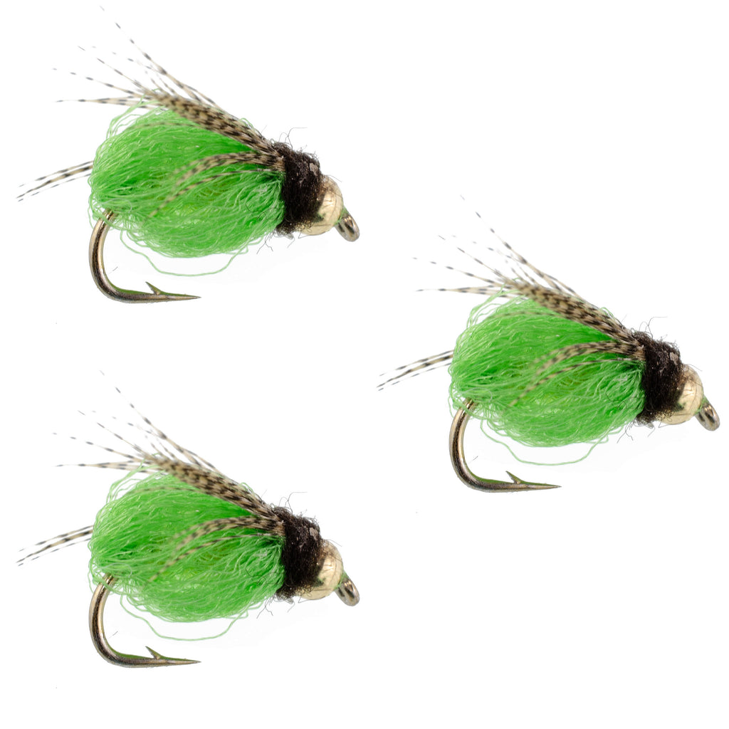 3 Pack Bead Head LaFontaine Bright Green Deep Sparkle Caddis Pupa - Hook Size 18