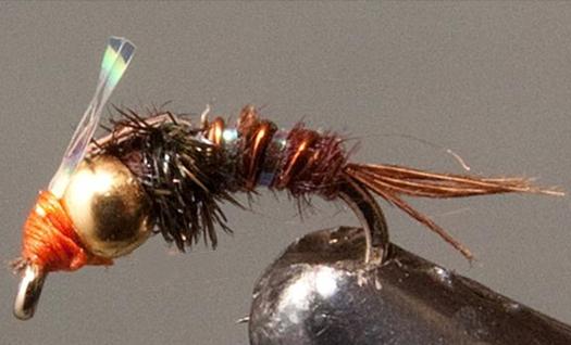The Sparkle version of the BH Pheasant Tail offers another variation of a Caddis or Mayfly nymphs. Sometimes that little extra flash can make all the difference. Fished in moving or still water, this pattern looks like many natural nymphs. The gold bead head makes it even more effective by adding weight and fish-attracting color.
