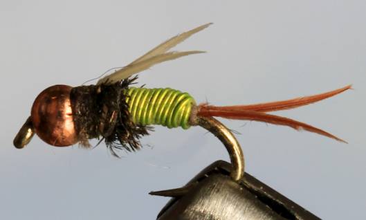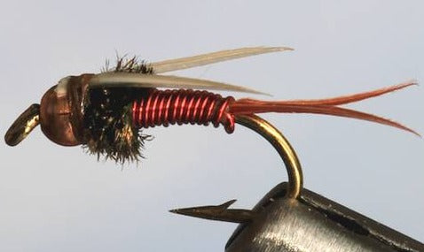 A modern variation of the BH Prince Nymph, the BH Ultra Prince has colored copper wire for the body. Use this pattern on tailwater, streams and lakes as an attractor pattern.