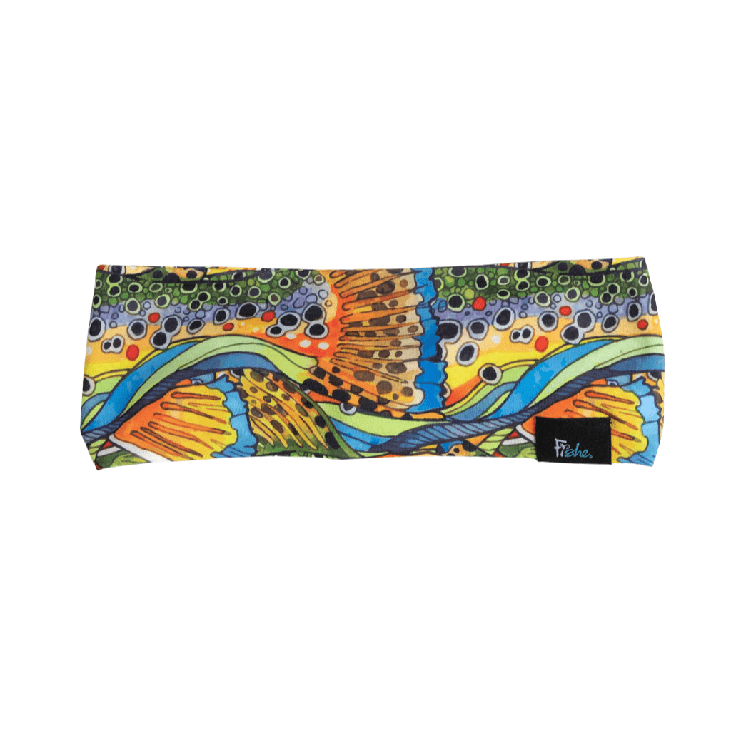 Explore the outdoors in style with our Unbound Brown Jersey Headband. Made from 90% polyester and 10% spandex, this headband is UPF 50+ for gentle sun protection and moisture wicking for comfort in hot temperatures. Its design features a rainbow of colors, not unlike natural Brown Trout.