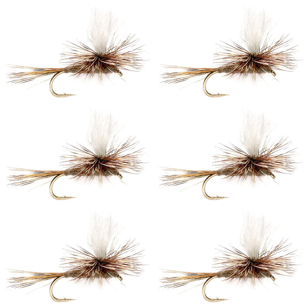 1 Set of 6 Dry Flies — Includes hand-tied parachute Adams dry flies; suitable for trout fishing in freestone rivers, tailwaters, and stillwaters