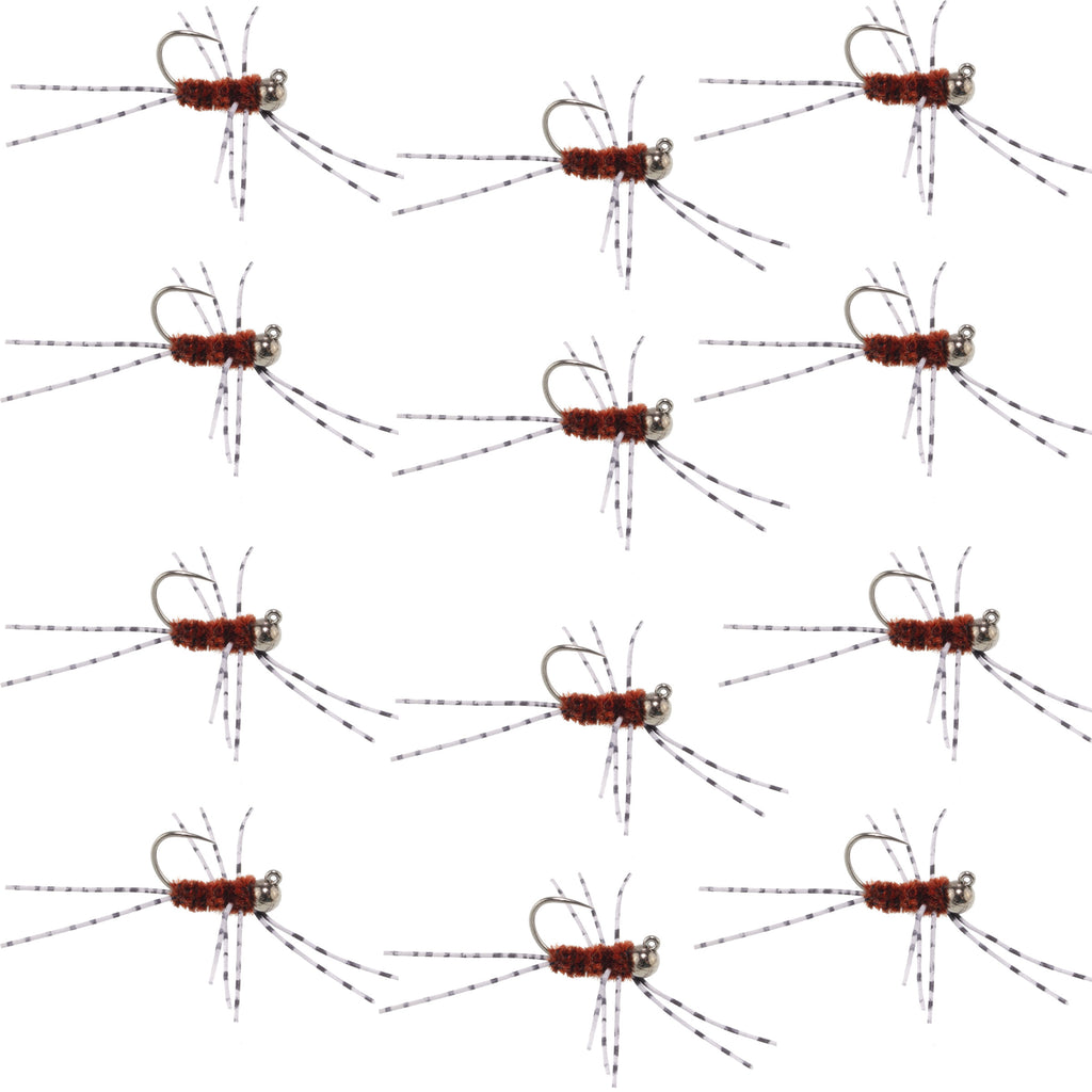 Barbless Pat's Barred Rubber Legs Tungsten Bead Jigged Brown Euro Nymph - Set of 12 Flies Hook Size 6