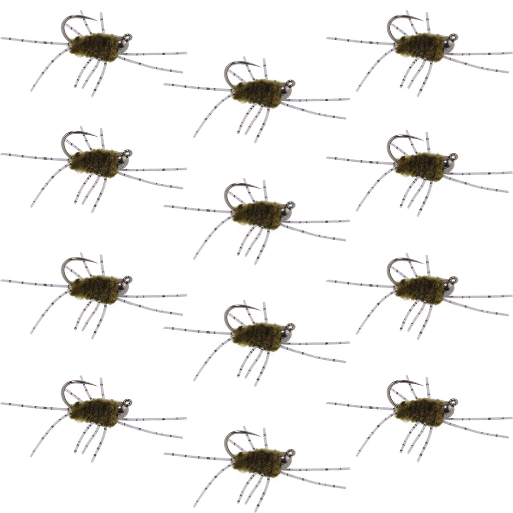 Barbless Pat's Barred Rubber Legs Tungsten Bead Jigged Dark Olive Euro Nymph - Set of 12 Flies Hook Size 6