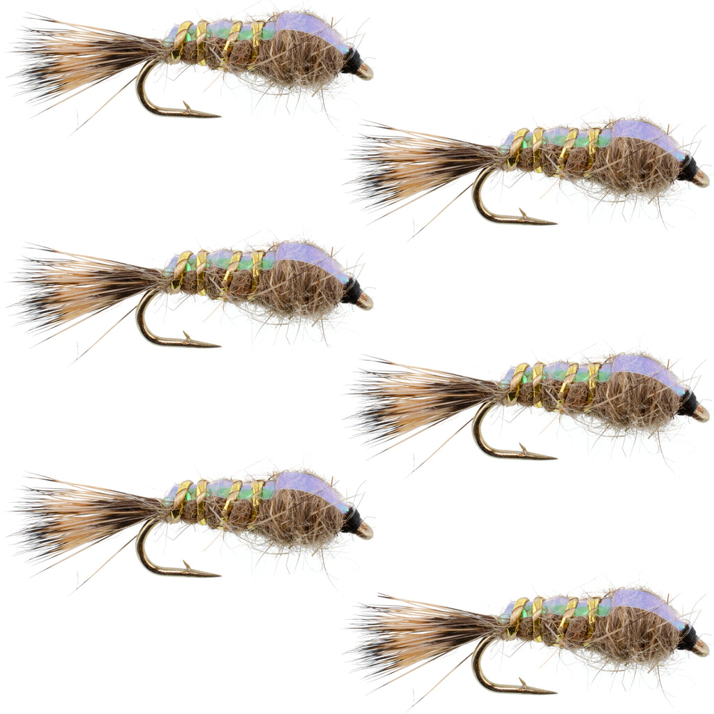 Set of 6 Weighted Flashback Gold Ribbed Hare's Ear Nymph Flies - Hook Size 16