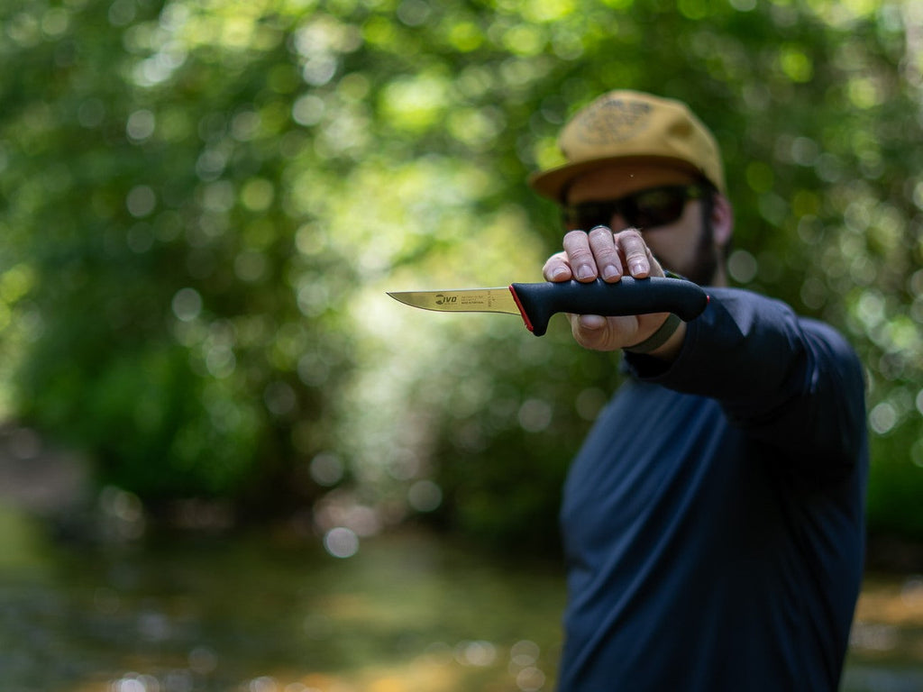 Introducing the IVO® DuoPrime 4" Black Boning Knife—an essential tool for every outdoorsman and angler! Crafted with a durable double-injected handle and a high-grade stainless steel blade, this knife delivers exceptional slicing power that will last through countless fishing trips and outdoor adventures. Its seamless handle-blade connection ensures hygiene by preventing bacterial buildup, while the Dryflex TPU rubberized grip provides a secure hold with built-in antimicrobial protection. A must-have for precision cutting and processing fresh catches in any outdoor setting!